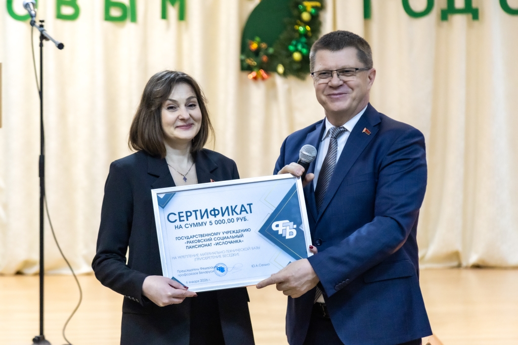 Такие встречи всегда наполнены теплом и улыбками. Они дают возможность задуматься о главном, проявить внимание к людям, которые в нем особенно нуждаются. А еще – помочь социальному учреждению сделать жизнь своих подопечных более комфортной. Так и в этот раз. Лидер национального профцентра от имени ФПБ вручил «Ислочанке» сертификат на укрепление материально-технической базы. Также Федерация профсоюзов приобрела для проживающих в пансионате необходимые бытовые принадлежности.